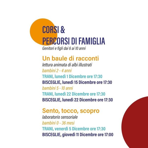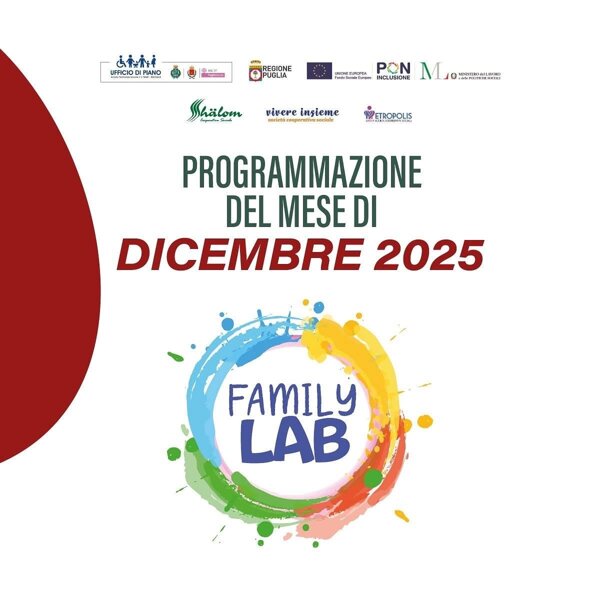 In collaborazione con i Volontari dell'AUSER vi aspettiamo a Trani il 19 dicembre alle ore 18.00 e il 3 dicembre alle ore 18.00 a Bisceglie per condividere risate, chiacchiere e numeri da segnare. La partecipazione a tutte le iniziative del FAMILY LAB è GRATUITA, previa apposita iscrizione e verifica della disponibilità di posti.