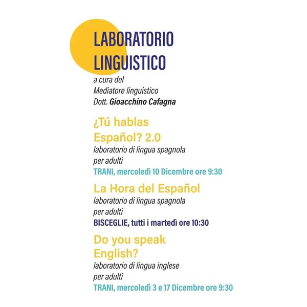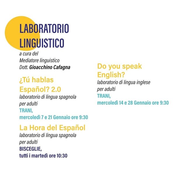 Venerdì 23 gennaio dalle 16.00 alle 19.00 presso Biblioteca Comunale di Trani.