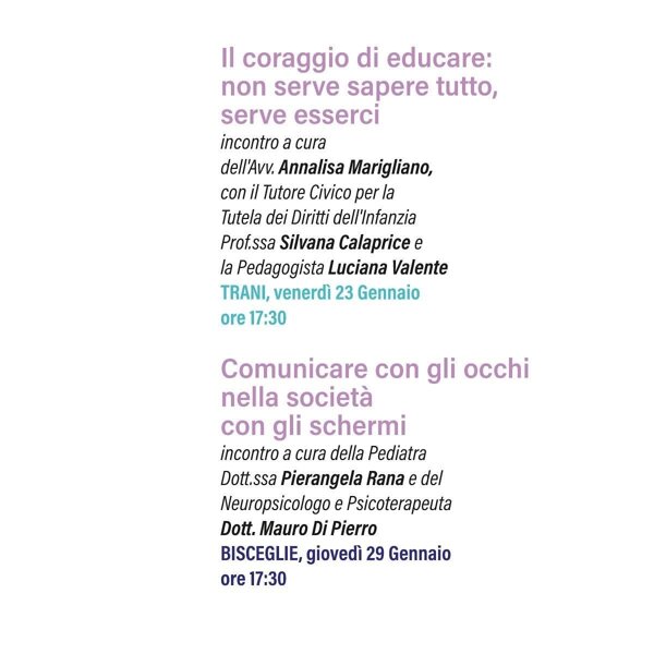 Con il patrocinio della Città di Trani, il IV Circolo didattico Beltrani organizza venerdì 22 gennaio 2026 alle ore 15.30 un convegno in biblioteca sul tema dell'ADHD (Attention Deficit Hyperactivity Disorder).